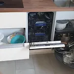 Este alojamento fornece forno e máquina de lavar loiça numa kitchenette.